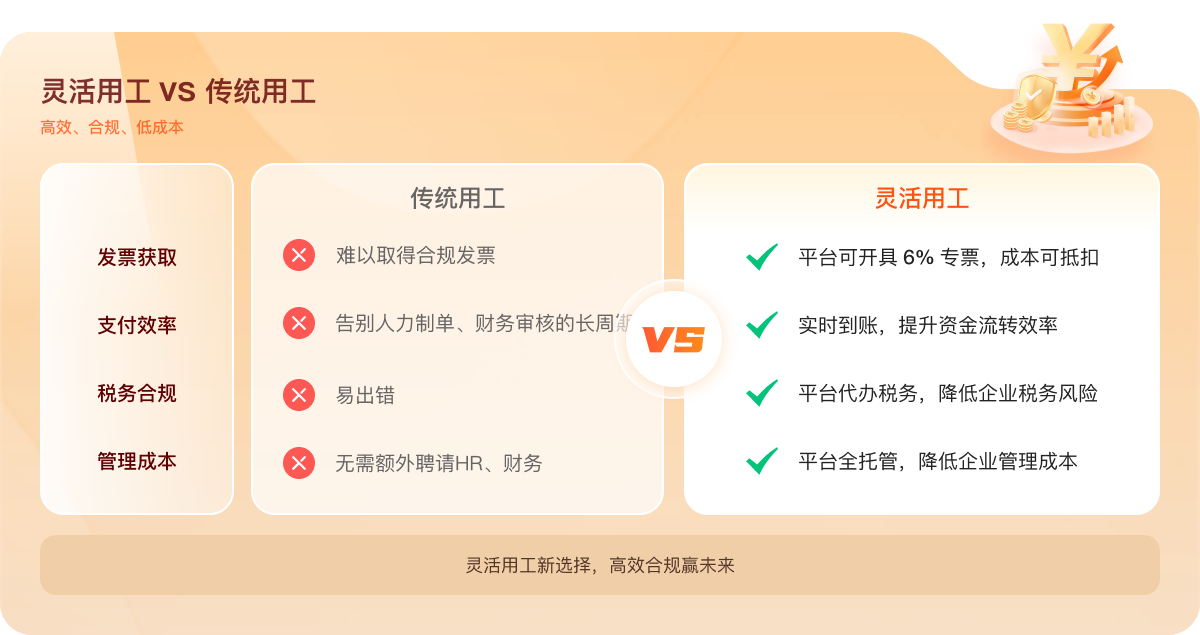 平台全托管模式,实现用工成本优化、税务合规保障、结算价格透明与资金安全管控